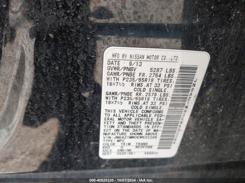VIN: JN8AZ1MW0EW502286
