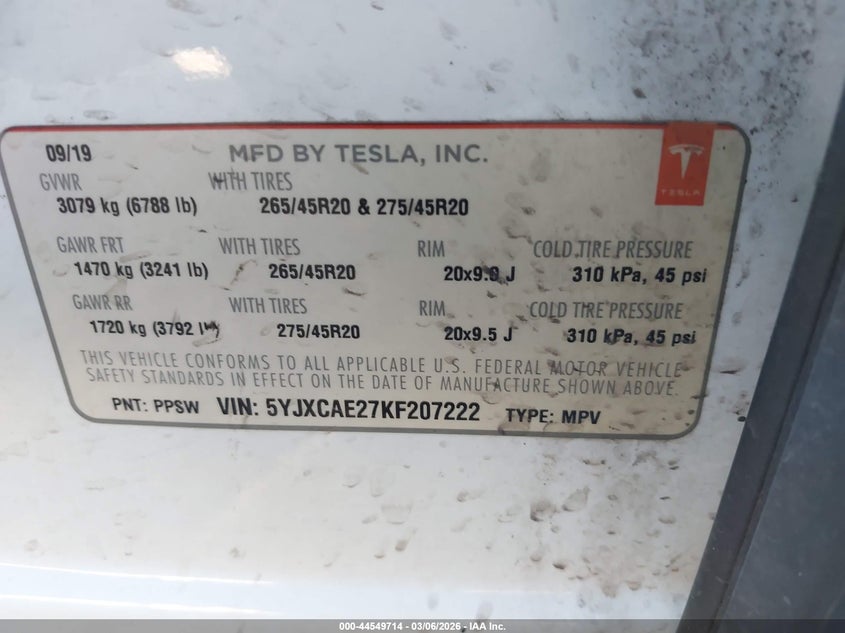 VIN: 5YJXCAE27KF207222