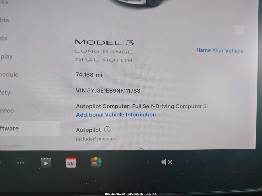 VIN: 5YJ3E1EB9NF111783